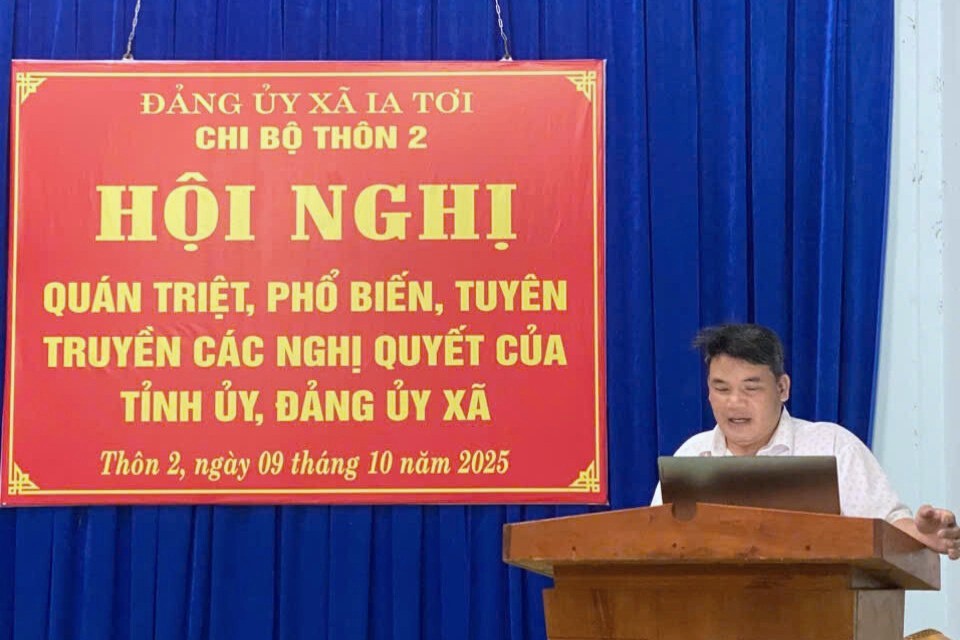 Tối 09/10, Chi bộ Thôn 2, xã Ia Tơi tổ chức Hội nghị quán triệt, phổ biến, tuyên truyền các Nghị quyết của Tỉnh ủy, Đảng ủy xã. Tham dự Hội nghị có toàn thể Đảng viên Chi bộ và các ban, ngành, đoàn thể thôn.