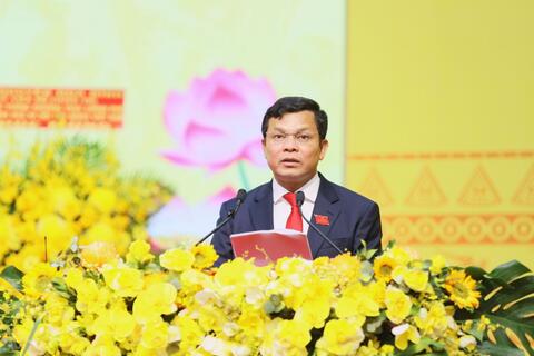 Đồng chí Thao Hồng Sơn, Uỷ viên Ban Chấp hành Đảng bộ tỉnh, Bí thư Đảng uỷ xã phát biểu khai mạc Đại hội.
