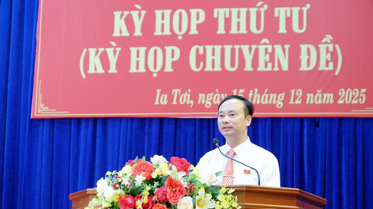 Chiều 15/12, HĐND xã Ia Tơi tổ chức kỳ họp thứ tư (kỳ họp chuyên đề) nhằm thảo luận, xem xét và quyết định các nội dung quan trọng, cấp thiết, đáp ứng yêu cầu nhiệm vụ phát triển kinh tế - xã hội của xã trong giai đoạn 2025-2026 và những năm tiếp theo.