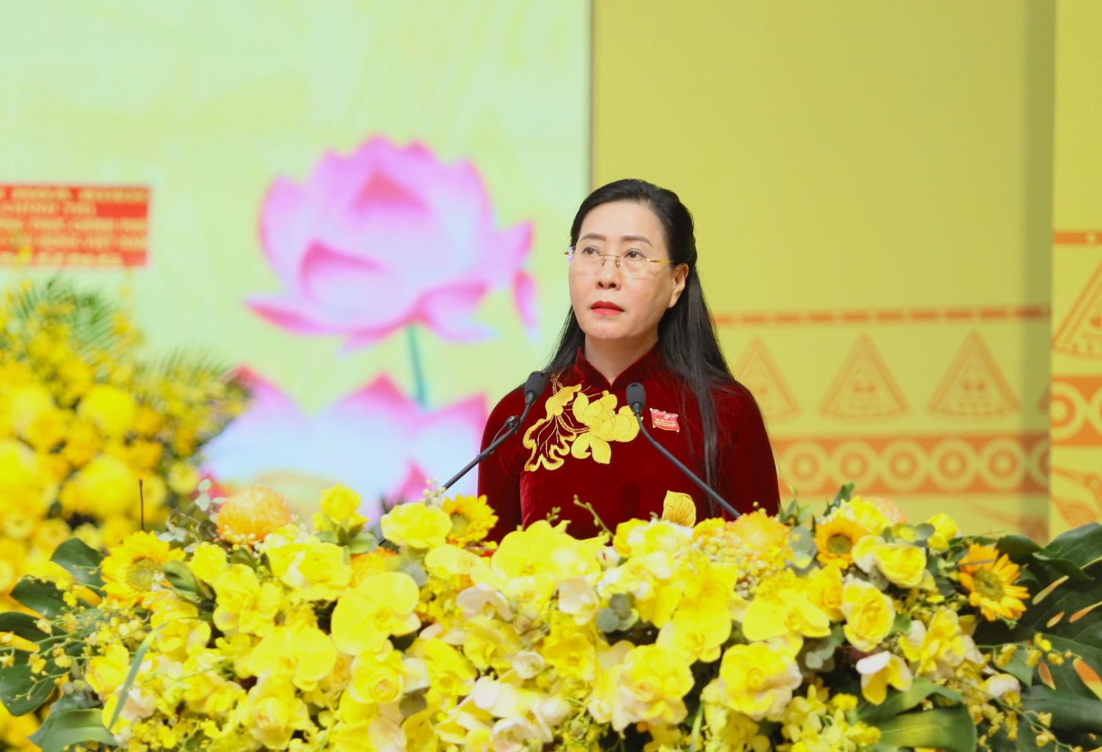 Ủy viên Ban Chấp hành Trung ương Đảng, Bí thư Tỉnh ủy Bùi Thị Quỳnh Vân phát biểu khai mạc Đại hội