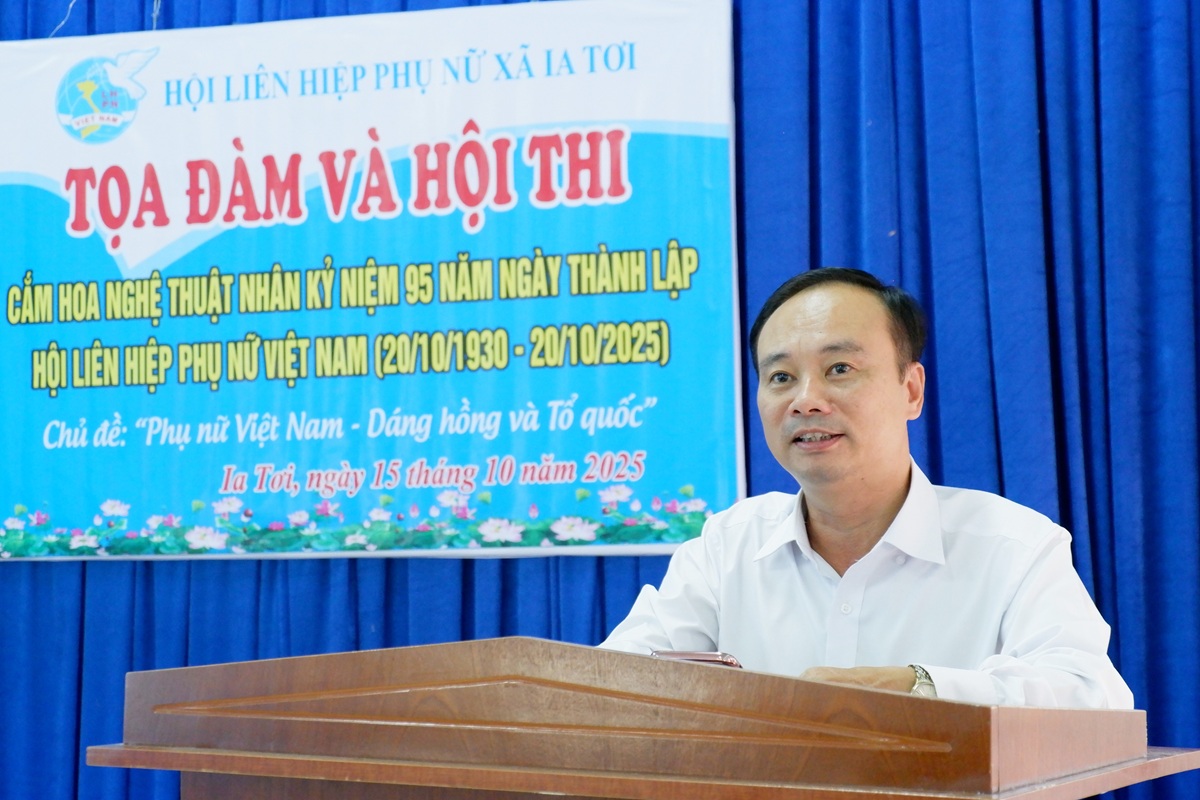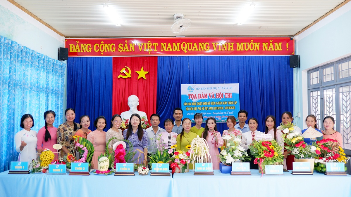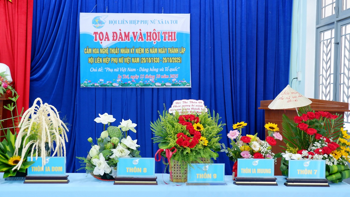 Chào mừng kỷ niệm 95 năm Ngày thành lập Hội LHPN Việt Nam (20/10/1930-20/10/2025), chiều 15/10, Hội Liên hiệp Phụ nữ (LHPN) xã Ia Tơi tổ chức buổi tọa đàm và Hội thi cắm hoa nghệ thuật.