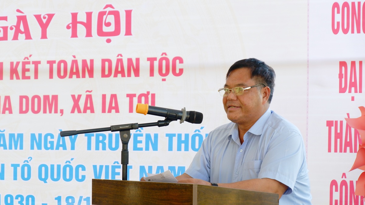 Phát biểu tại Ngày hội, đồng chí Bí thư Đảng ủy xã Thao Hồng Sơn đánh giá cao và nhiệt liệt chúc mừng những thành tích thôn Ia Dom đã đạt được trong thời gian qua. Thời gian tới, đồng chí mong muốn cán bộ, các tổ chức chính trị - xã hội và Nhân dân trong thôn tiếp tục tăng cường, phát huy truyền thống tốt đẹp và những thành tựu đã đạt được, triển khai thực hiện có hiệu quả Nghị quyết Đại hội Đảng bộ xã Ia Tơi lần thứ I, nhiệm kỳ 2025-2030; vận động Nhân dân tăng cường sức mạnh khối đại đoàn kết, hoàn thành tốt nhiệm vụ chính trị, văn hóa, xã hội của địa phương; tổ chức tốt các phong trào thi đua yêu nước; khích lệ, động viên những điển hình tiên tiến, những tập thể, cá nhân tiêu biểu để tạo khí thế thi đua sôi nổi; tiếp tục phát huy tinh thần tương thân, tương ái của Nhân dân, vận động, huy động các nguồn lực từ cộng đồng để chăm lo, giúp đỡ cho những hộ gia đình có hoàn cảnh khó khăn và đặc biệt khó khăn.