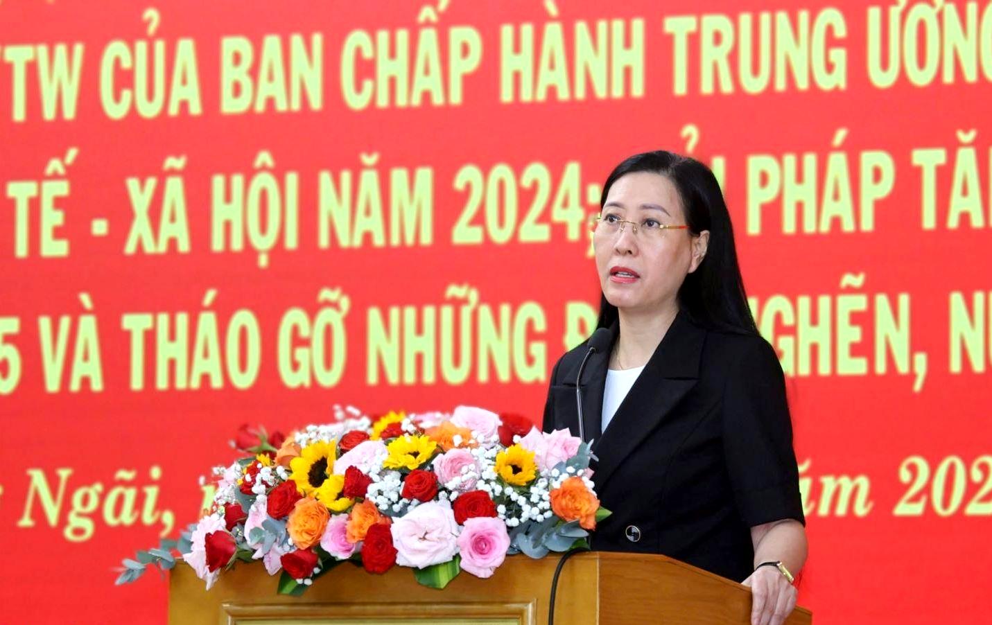 Ủy viên Trung ương Đảng, Bí thư Tỉnh ủy Bùi Thị Quỳnh Vân phát biểu tại Hội nghị triển khai các Nghị quyết của BCH Trung ương Đảng