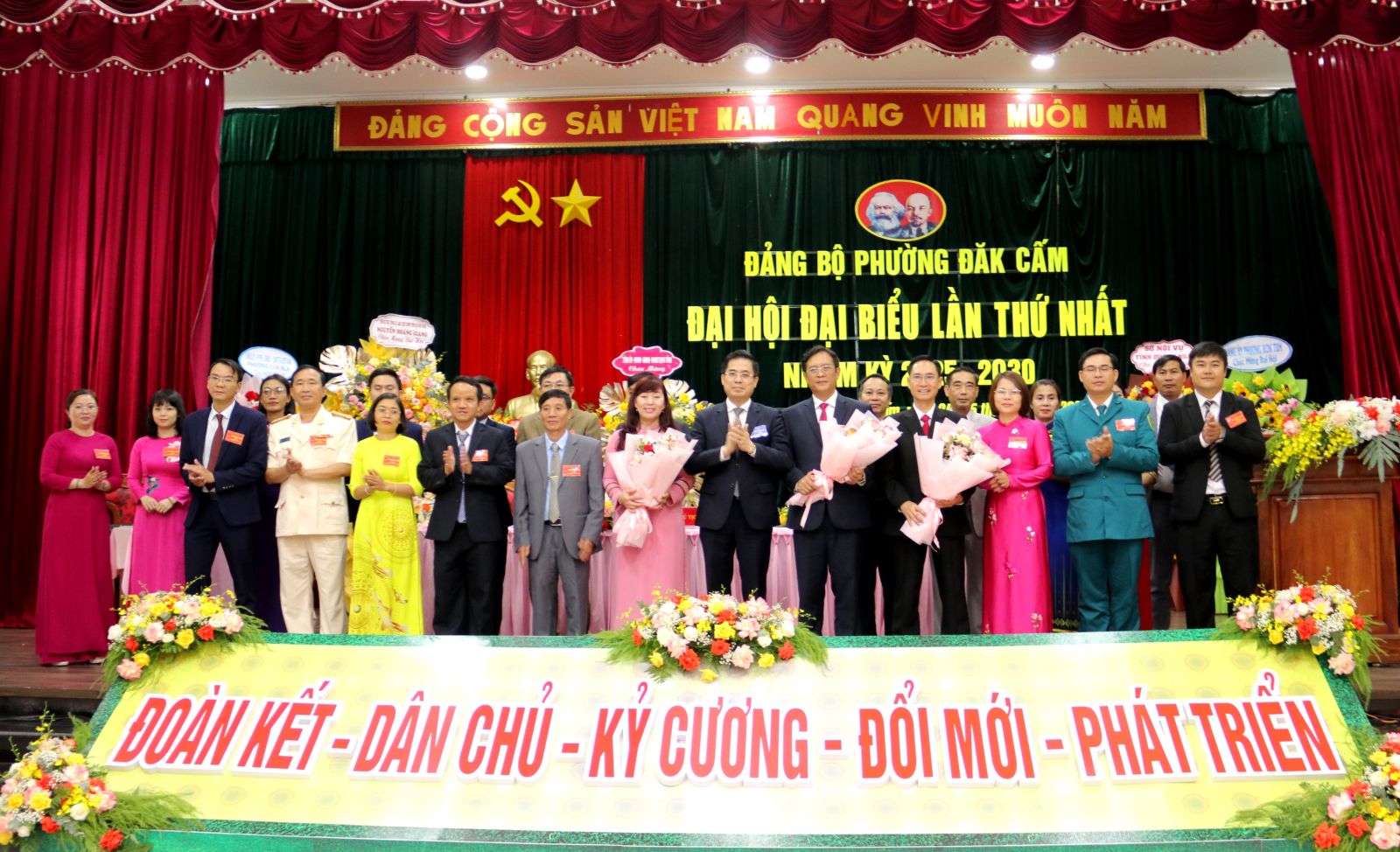 Lãnh đạo tỉnh dự và tặng hoa chúc mừng tại Đại hội Đại biểu Đảng bộ phường Đăk Cấm