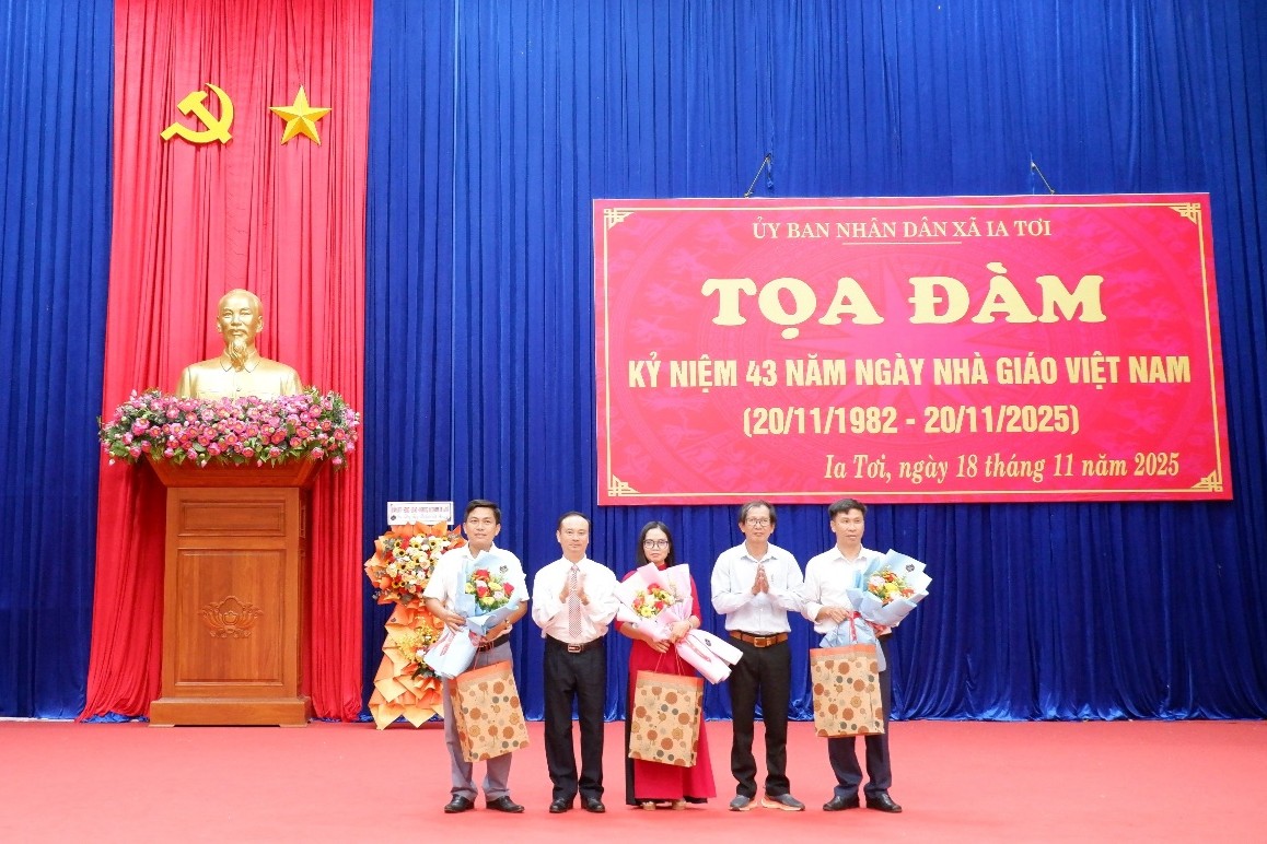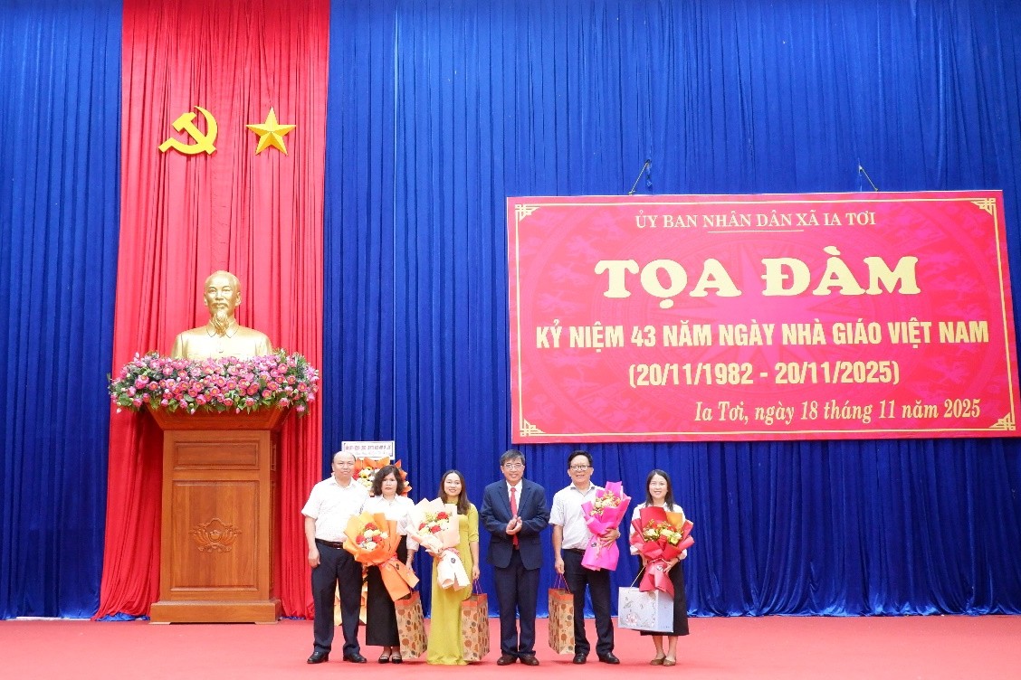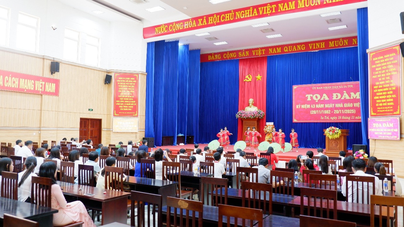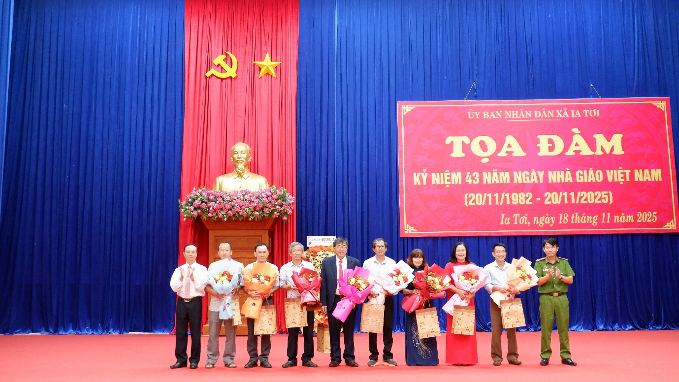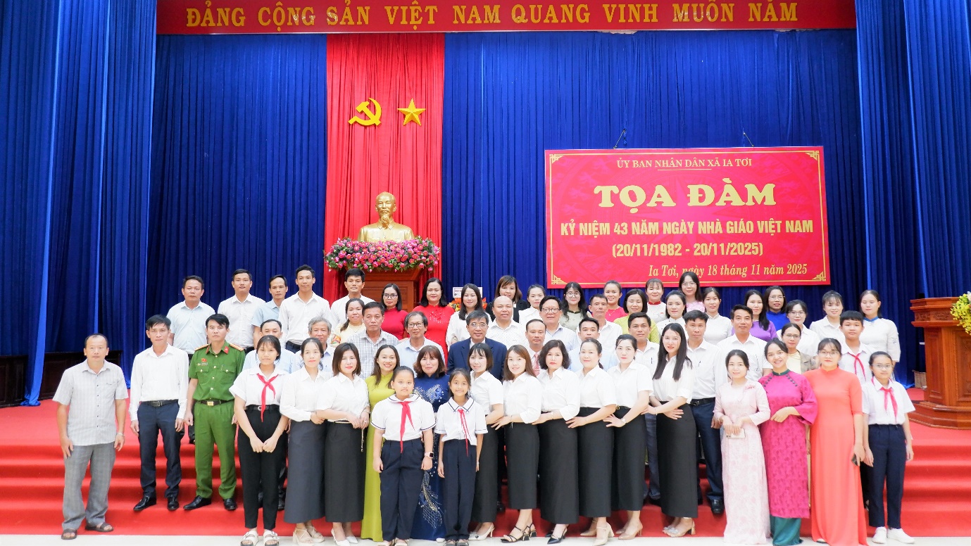 Chiều 18/11, UBND xã Ia Tơi long trọng tổ chức buổi Tọa đàm kỷ niệm 43 năm Ngày Nhà giáo Việt Nam (20/11/1982 – 20/11/2025). Đây là hoạt động thường niên nhằm tri ân đội ngũ nhà giáo, ghi nhận những đóng góp to lớn của các thế hệ thầy cô đối với sự nghiệp trồng người trên địa bàn xã.