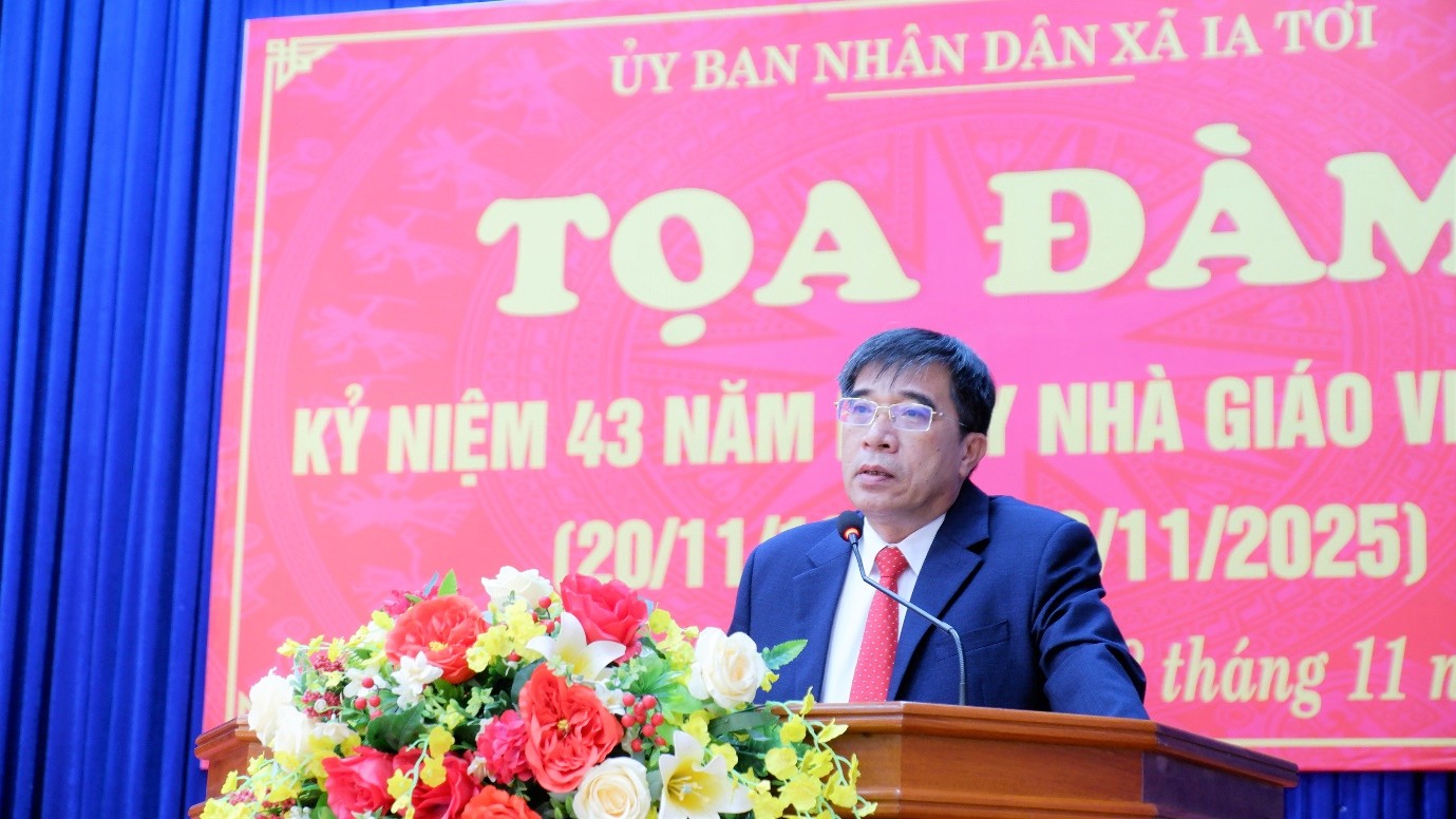 Phát biểu tại buổi tọa đàm, đồng chí Trần Văn Thu, Phó Bí thư Đảng ủy, Chủ tịch UBND xã nhấn mạnh ý nghĩa thiêng liêng của Ngày Nhà giáo Việt Nam, đồng thời gửi lời chúc mừng và tri ân sâu sắc đến các thế hệ nhà giáo đã và đang cống hiến cho sự nghiệp giáo dục của địa phương. Đồng chí mong rằng tập thể cán bộ giáo viên toàn Ngành hãy không ngừng phấn đấu, nỗ lực hơn nữa để hoàn thành tốt công tác quản lý, công tác nghiệp vụ chuyên môn theo hướng đổi mới hình thức và nội dung. Không ngừng tăng cường tư học, tự rèn luyện, nâng cao chất lượng dạy và học; các em học sinh nỗ lực học tập, rèn luyện để xứng đáng là con ngoan trò giỏi, cháu ngoan Bác Hồ, góp phần xây dựng quê hương Ia Tơi nói riêng và đất nước nói chung ngày càng phát triển, giàu đẹp, văn minh.